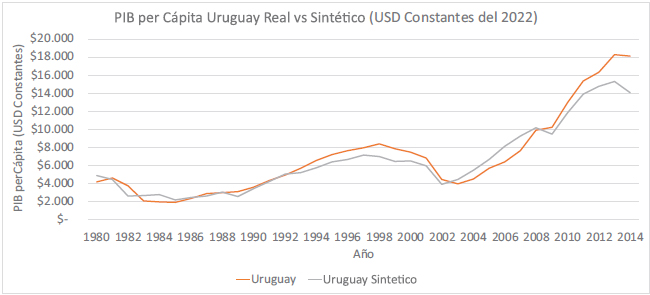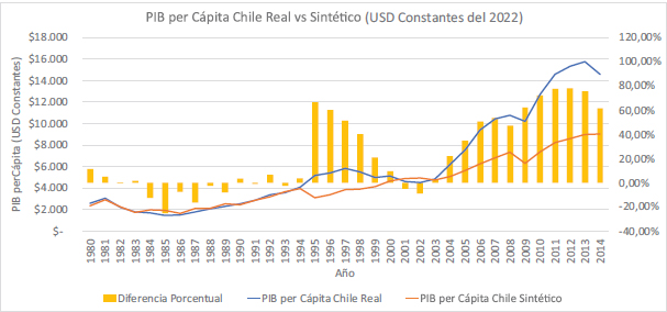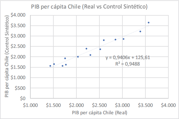 En este documento se analiza el impacto de la implementación de la Legislación de Concesiones de Obras Públicas (COP) en el crecimiento económico de Chile, utilizando el método de control sintético para construir un contrafactual que represente el desempeño del PIB per cápita en ausencia de la intervención. Basado en datos de PIB per cápita de Chile y siete países latinoamericanos seleccionados para el periodo 1980-1993, se desarrolló un modelo sintético que minimiza las diferencias pre-intervención. Los resultados indican que, tras la implementación de las políticas en 1994, el Producto Interno Bruto per cápita de Chile comenzó a divergir significativamente del contrafactual sintético, particularmente a partir de 2002, sugiriendo un impacto positivo significativo de las políticas de Asociación Público Privada (APPs) en el crecimiento económico del país.