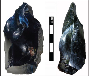 Obsidiana hallada en la Sierra Maestra, Santiago de Cuba. Fotografía: Ramón O. Pérez Aragón (2010)
