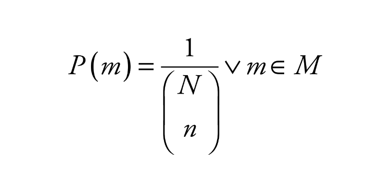 Dado que todas las muestras son equiprobables, la probabilidad de cada muestra m se define a partir de: