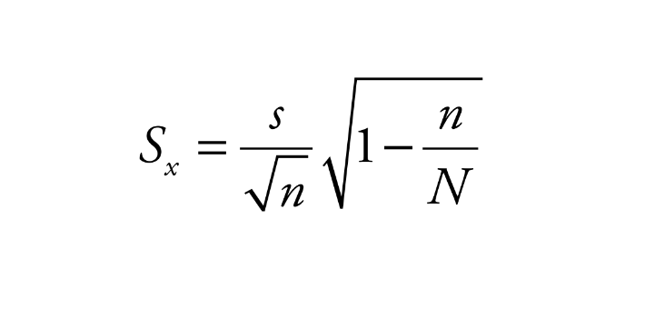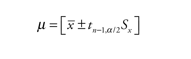 La precisión de la estimación definida como la diferencia entre el verdadero valor del parámetro μ y su estimador sera menor que tn−1,α/2Sx a un nivel de confianza 1−α, de forma que para el cálculo del tamaño de muestra se debe estimar la media de la población con un error inferior a ε. Para obtener una estimación del tamaño de muestra es necesario igualar el intervalo generado para estimación de ε y despejar n, con lo que se obtuvo una muestra tamaño 55 con un factor de ponderación de 5 con lo que expandió la muestra a un total de 275: