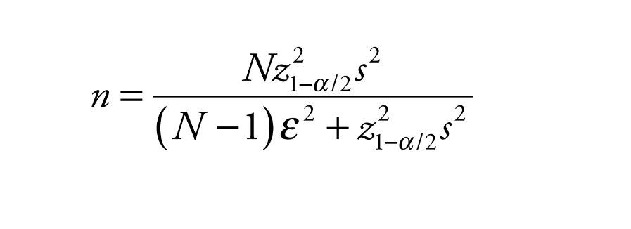 El tamaño de muestra está en función de la precisión especificada en la estimación del parámetro o parámetros de interés más importantes de la población. En general se supone que las variables de interés a estimar siguen una distribución normal, con un intervalo de confianza correspondiente al nivel (1−α), dado por: