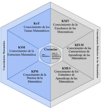 Con respecto a aspectos disciplinares y didáctico-disciplinares, se contemplan dos modelos teóricos: 1) Conocimiento Especializado del Profesor de Matemática (MTSK por su sigla en inglés) (Carrillo-Yañes et al., 2018), que ha sido ampliamente utilizado para analizar el conocimiento del profesorado de matemática (Martignone et al., 2022; Loría-Fernández et al., 2023); 2) Teoría de los Espacios de Trabajo Matemático (ETM) (Kuzniak et al., 2022), aplicada para analizar el trabajo matemático del profesor y de estudiantes (Henríquez-Rivas y Kuzniak, 2021). Ambas perspectivas se han manejado en complementariedad, pues permiten ahondar en aspectos didácticos y disciplinares del profesor de matemática (Espinoza-Vásquez et al., 2025; Verdugo-Hernández y Caviedes-Barrera, 2024). A continuación, se describen las dimensiones consideradas para el diseño del instrumento: